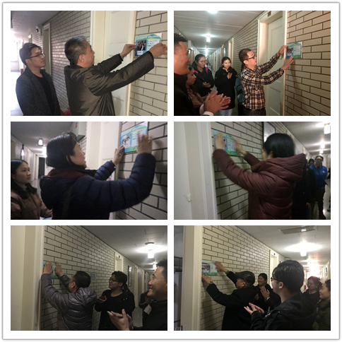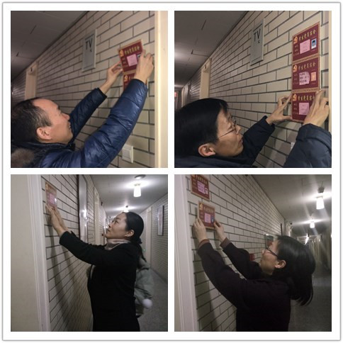 领导老师们分别前往男生公寓和女生公寓为党员宿舍和学生宿舍进行挂牌。